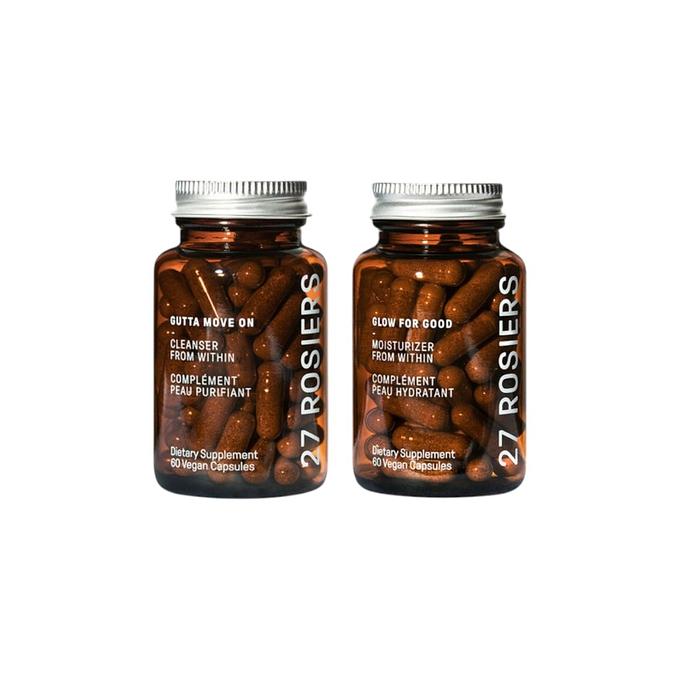 Double up on daily supplements designed to keep your gut healthy and your skin radiant. Each supplement is packed with a powerful blend of skin-nourishing herbs, body-boosting vitamins, and essential nutrients. Working together, they cleanse, nourish, clarify, and energize—helping you shine brighter than ever.