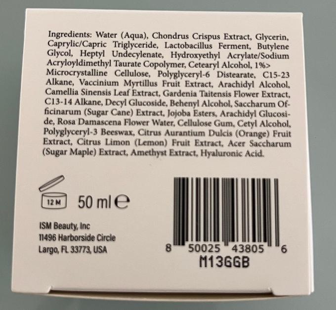 Water (Aqua), Chondrus Crispus Extract, Glycerin, Caprylic/Capric Triglyceride, Butylene Glycol, Heptyl Undecylenate, Hydroxyethyl Acrylate/Sodium