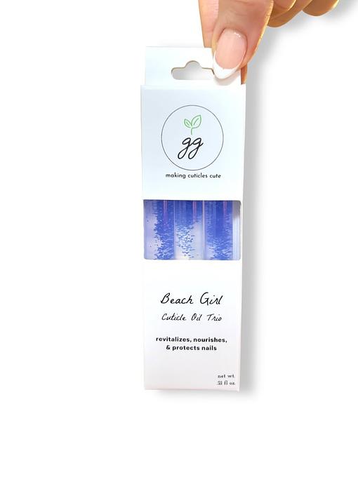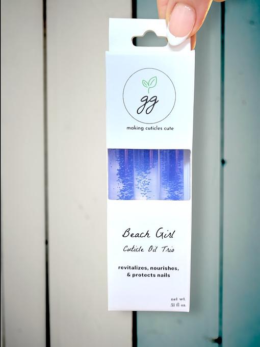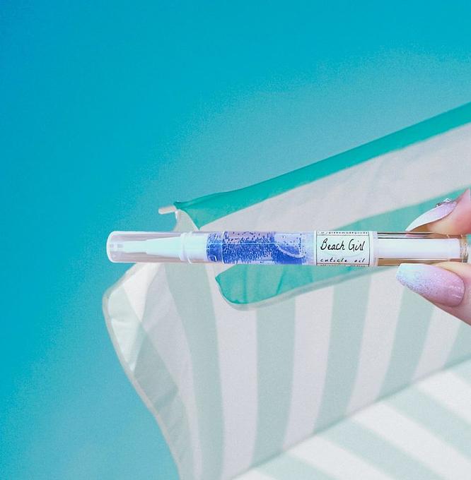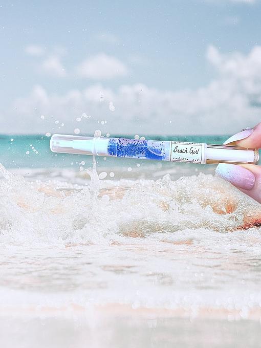 Beach Girl Cuticle Oil repairs dry, cracked, and peeling, nails + cuticles in seconds… while leaving you with all your favorite beach smells- fresh ocean air along with your favorite coconut sunscreen on a hot, sunny day.