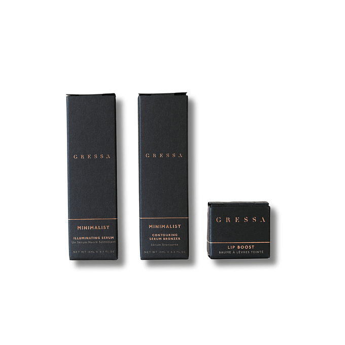 This limited edition Bronze Collection features our Minimalist Bronzer Serum, Illuminating Serum (Drops of Jupiter), Lip Boost Brilliant, and Air Focus Brush for $125 (Regularly $154). Perfect for gifting to yourself or someone special. Experience our signature luxury unboxing ritual.