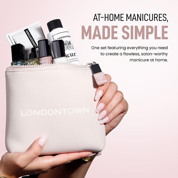Illuminating Nail Concealer: Start with clean nails. Apply 1-2 coats (one layer gives a sheer wash; two provides more coverage). For extended wear, finish with any Londontown top coat.
