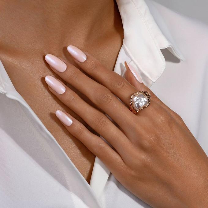 A first-of-its-kind lakur finish that provides an instant metal shine and an ethereal sheen chrome look without the fuss of powders or UV lights. Wear over lakur to give a modern effect that shifts and shines with every lighting. No curing required.