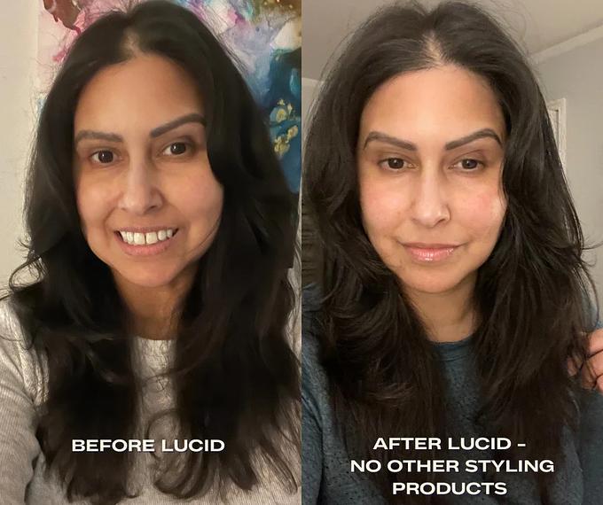 Lucid adds strength and shine, while retaining the hair's natural pattern. Tremella mushroom, which holds 500x its weight in moisture, is typically used in skincare, and Lucid is the first-ever product crossing over this ingredient into haircare. Tremella also acts as a natural alternative to silicone, forming a light film over the hair, leaving your tresses silky and shiny.