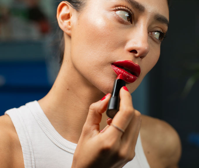 Use as cream blush, tap 1-2 small dots on the cheeks and buff out for a soft red blush. For a blotted lip look, bring your fingers to the bullet formula to pick up some color and tap into your lips. Mix with our nude Sydney at 8AM to make a unique shade made just for you.