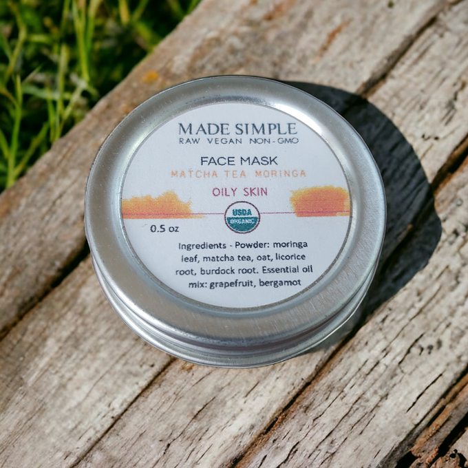 Our Matcha Tea Moringa Mask combines moringa leaf powder and matcha tea powder among other powders and essential oils to soothe, purify, and absorb excess oil from your skin. Formulated for oily skin types, this mask eliminates toxins and has antioxidant properties from licorice root known to help balance the oil in the skin and diminish discoloration, control bacteria and promote healing. Incorporate this mask into your weekly skin regimen to achieve a smoother and brighter complexion.