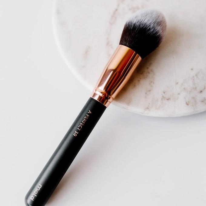 This precision brush features fluffy crimped fibers optimally designed to pick up and apply loose or pressed powders, achieving a smooth and flawless complexion you want.
