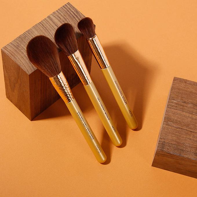 Gold Goddess Brush Set includes 3 face brushes to contour, highlight, and apply all over bronzer for a sun-kissed glowing makeup look.