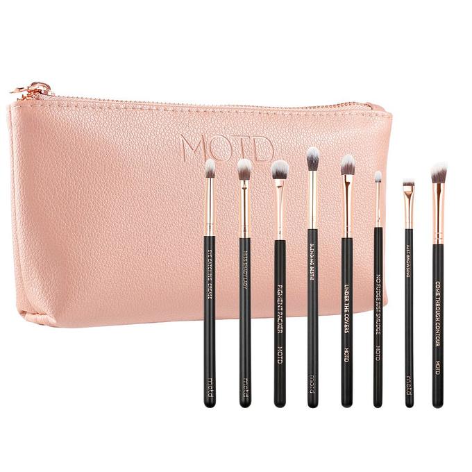 The Lux Vegan Eye Makeup Brush Set is made for both beginners and professionals. Take any eye look from day to night with this 8 - piece vegan eye makeup brush set. This set includes a blush vegan leather bag with rose gold hardware that is great to take with you on the go.