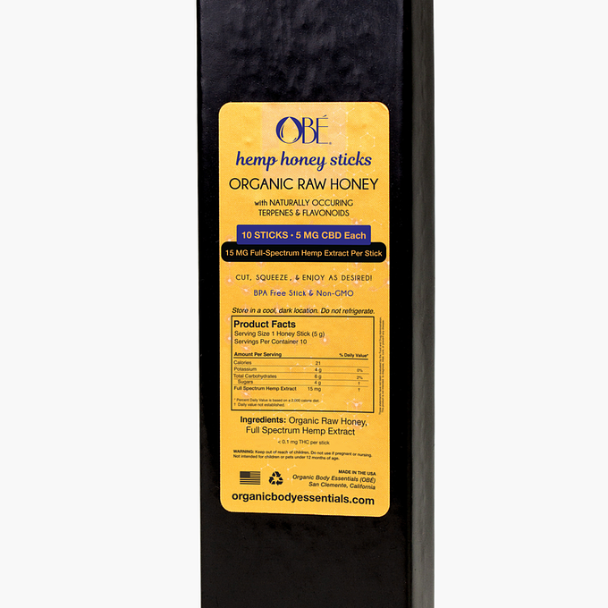 At Organic Body Essentials, we offer full-spectrum CBD honey so you can get the most for your buck. Our full-spectrum creates a more comprehensive, full-bodied experience with its own effects that provide its own unique benefits that other CBD honey stick products simply cannot. Not all full-spectrum CBD-infused honey sticks are made the same, so taste the difference and purchase a product you can trust from potency to purity today.