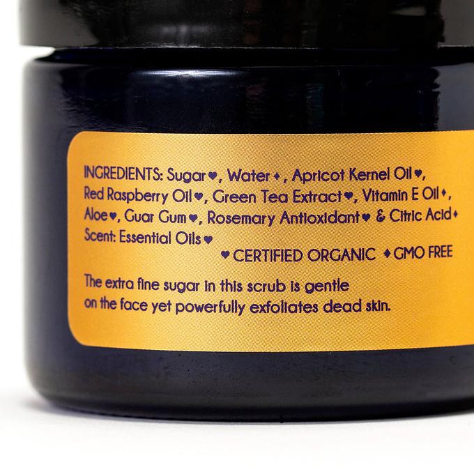 This organic fine sugar scrub is made for deep cleansing and exfoliation. Excellent facial oils of apricot kernel and raspberry seed will leave your skin feeling nourished and super smooth. Experience excellent skin renewal and restoration for both your face and lips