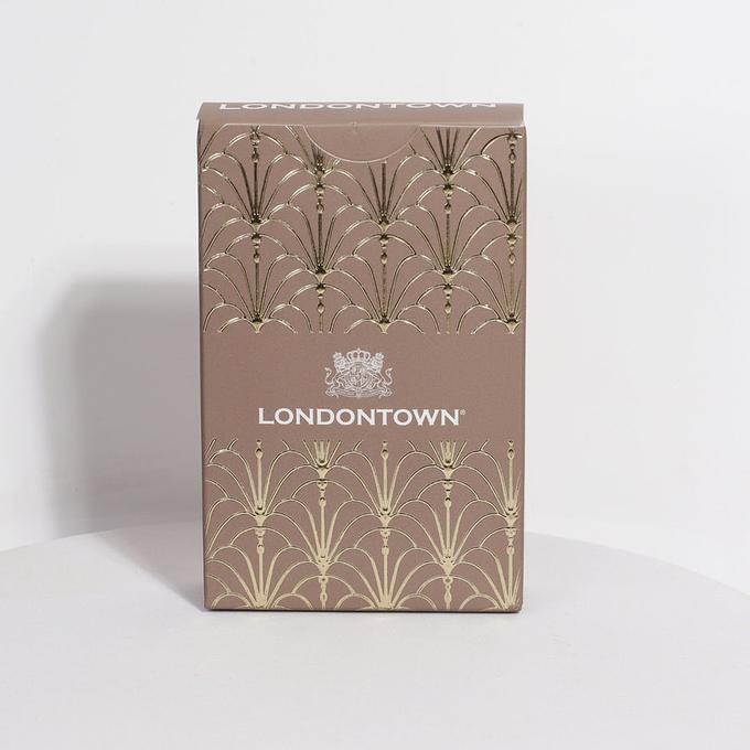 The perfect addition to your next intimate gathering, this custom 52-card deck dons Londontown’s coat of arms with customized suit colors tailored to match our fall 2024 lakur collection, Parlour Party. Connect and celebrate over a game of gin rummy or crazy eights.