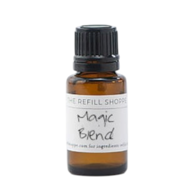 The Magic Blend is a mysterious blend with sweet florals and nice complexity. It smells like moonlight and fairy dust, featuring notes of orange, rose, jasmine, marjoram, and blue tansy. Perfect for enhancing those magical moments in life.